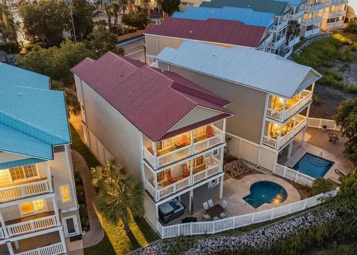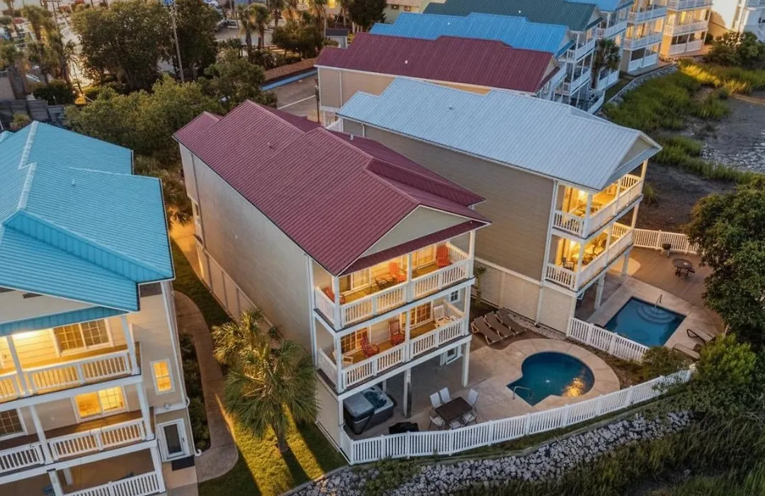 Located 700 m from Cherry Grove Oceanfront Park|the Cherry Grove Oceanfront Park, the 4-bedroom One More Cherry On Top - 5Br-4Ba Marshfront- Heated Pool, Hot Tub, Elevator, Sleeps 18 Myrtle Beach villa offers a private pool for guests to relax by.